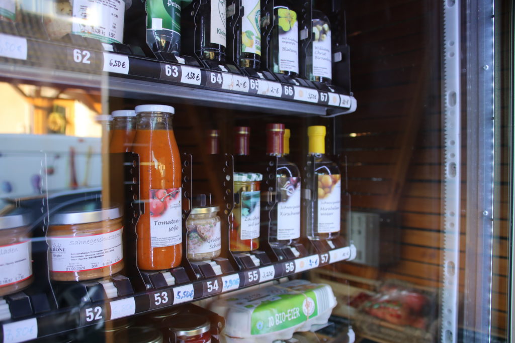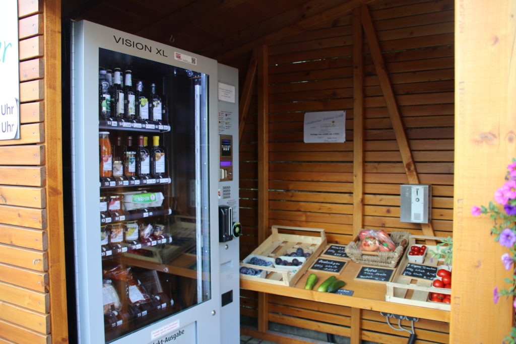 Damit Sie sich jederzeit aus unserem Sortiment bedienen können, haben wir auf unserem Hof einen Verkaufsautomat für Sie aufgestellt. Dort finden Sie viele unserer Produkte rund um die Uhr. Bezahlen können Sie bequem bar (Scheine und Münzen) oder per EC-Karte.